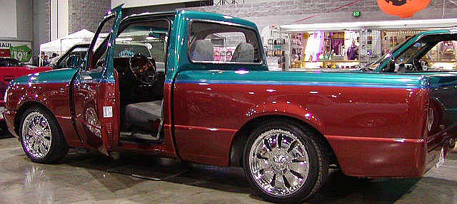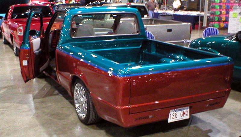 shaved emblems, door handles, tailights, 3rd brake light, antenna, talgate handle, bed stake holes, gas door and relocated to inside bed, cab seam lines. Added 98 smooth front bumber as well as 94 Splash grill. Molded in rollpan.