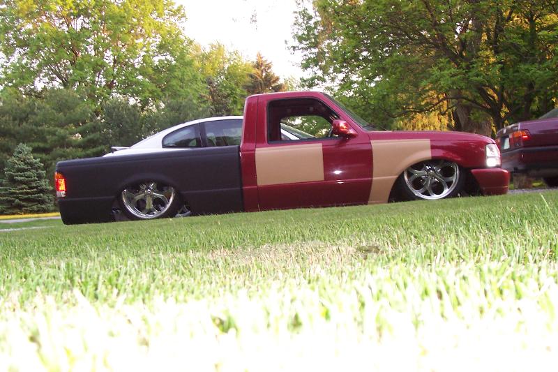mII front suspension/full frame,totally from scratch ( bought ball joints, rings , 2" drop spindles, brake kit and steering rack and built everything else. ) went from 4 1/4" traditional bodydrop to 1 1/4" traditional w/ about 4" of stockfloor slam re6 in front , currently es72 in back. 2 five gallon chrome tanks, 2 AZ compressors. everything done in the KINGSIZE garage....