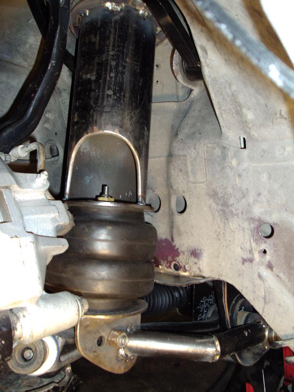 Custom built front bag mounts turning the front I-Beam suspension into A-arms to use 6" slam bags, 1 off front UCA's with uni-balls built by Michigan Metal Works.