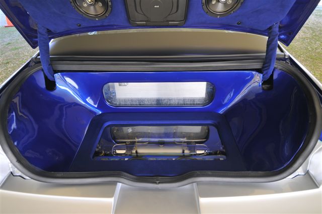 Custom molded fiberglass speaker enclosure housing (6) Memphis Power Bass 12’s, which has also been painted to match
