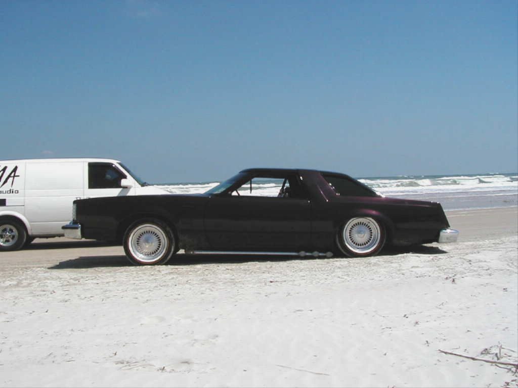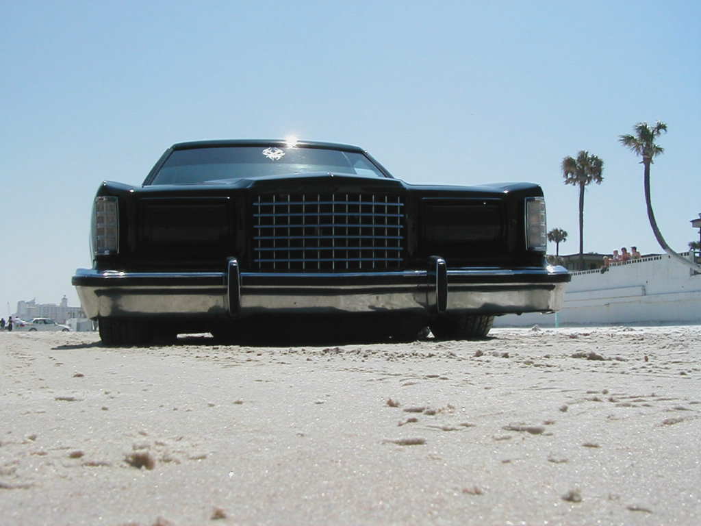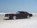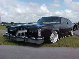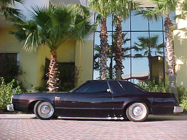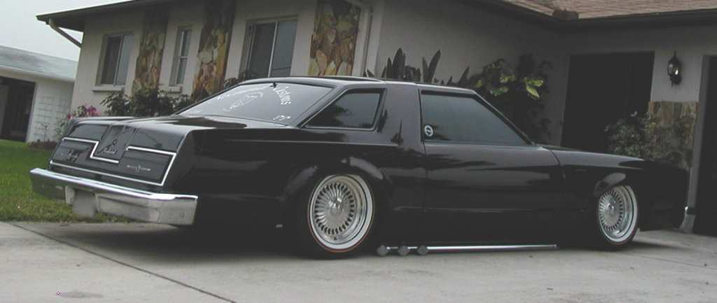 Shaved: Door handles, locks, mirrors, Opera windows, Landau bars, side body moldings, front and rear side markers, antenna, and gas door. Mods: Continued and faded body line up the Landau band, relocated gas filler, and hinged rear body filler panel for gas filler. Extras: De-chromed all window moldings, paint match tinted tail light lens, swapped bumpers with moldings from a 78 Cougar, added chrome Triple Lake side pipes currently for show. Paint: PPG Black with HOK Gold Prismatic Flake & PPG Translucent Red Pearl patterned overlay.
