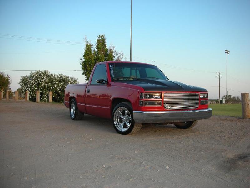 Projector Headlights(black background)with 10k H I D covertion,LED brake lights, 3'4' drop from belltech, 31 bar hi dens. Billet Grill, New front smoothie bumper, and a 2inch cowl hood