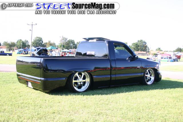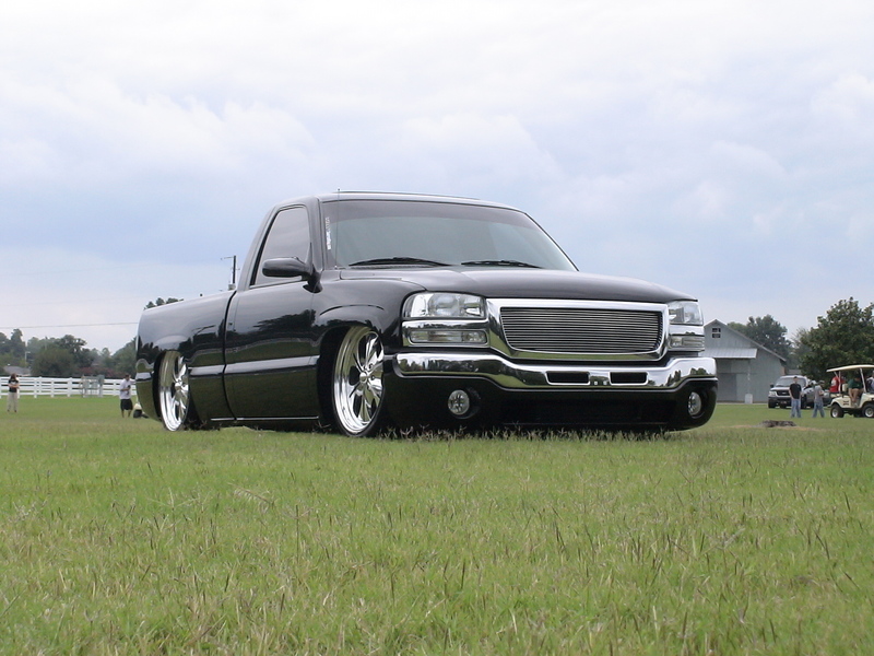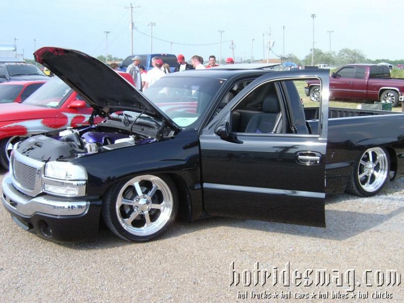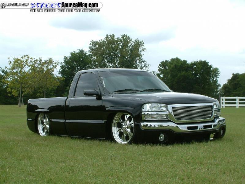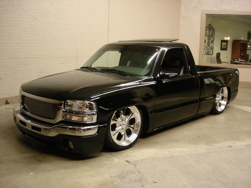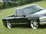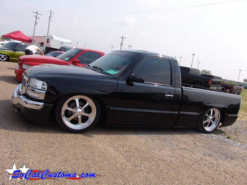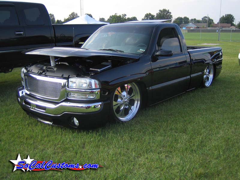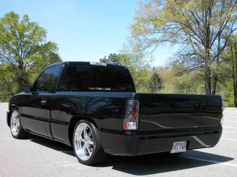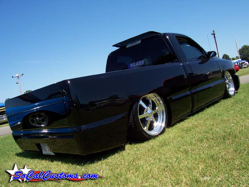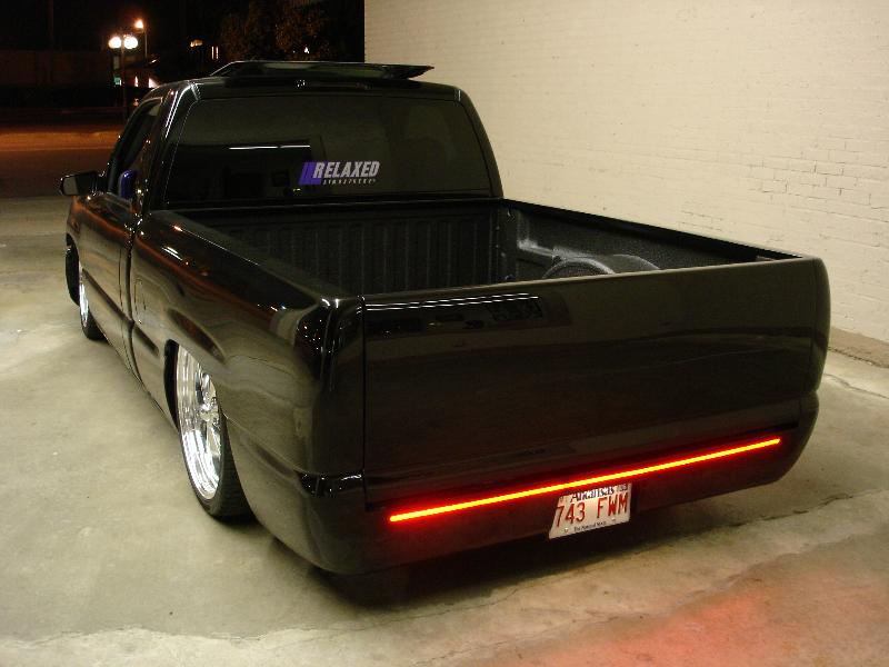 ///Billet grill, street scene sport mirrors, sir michaels roll pan, shaved door handles, tailgate handle, taillights, stake pockets, roll pan molded in, 56" Hi Tech LED, cleared headlights, clear parking lights, billet antenna, 41" Wabasto sunroof, some old school pinstriping on the hood and tailgate