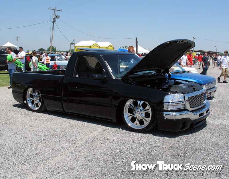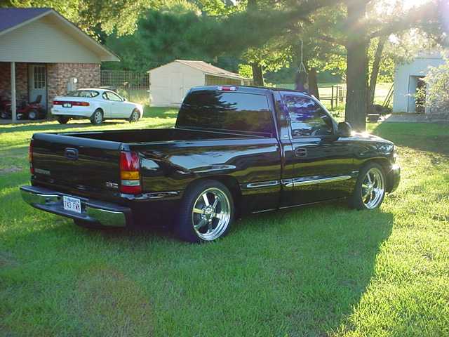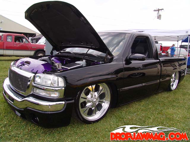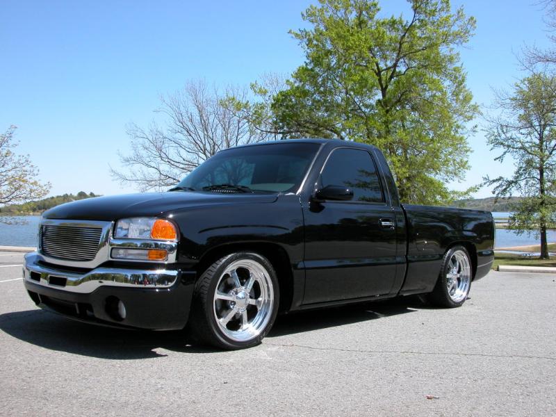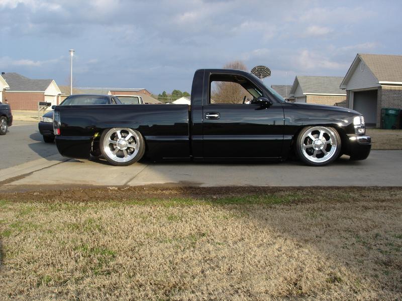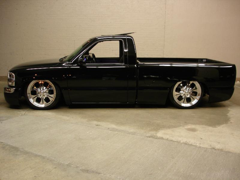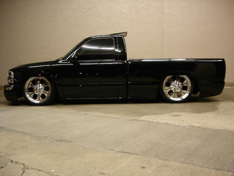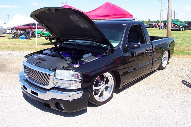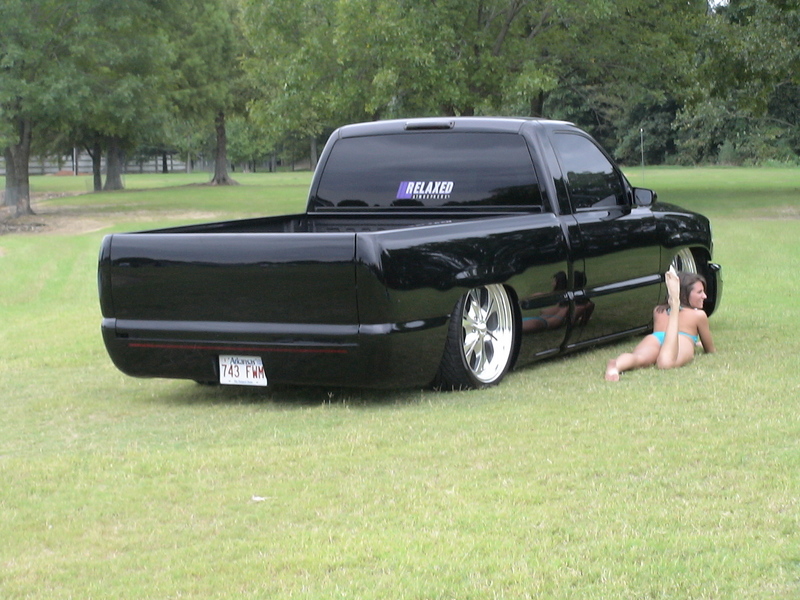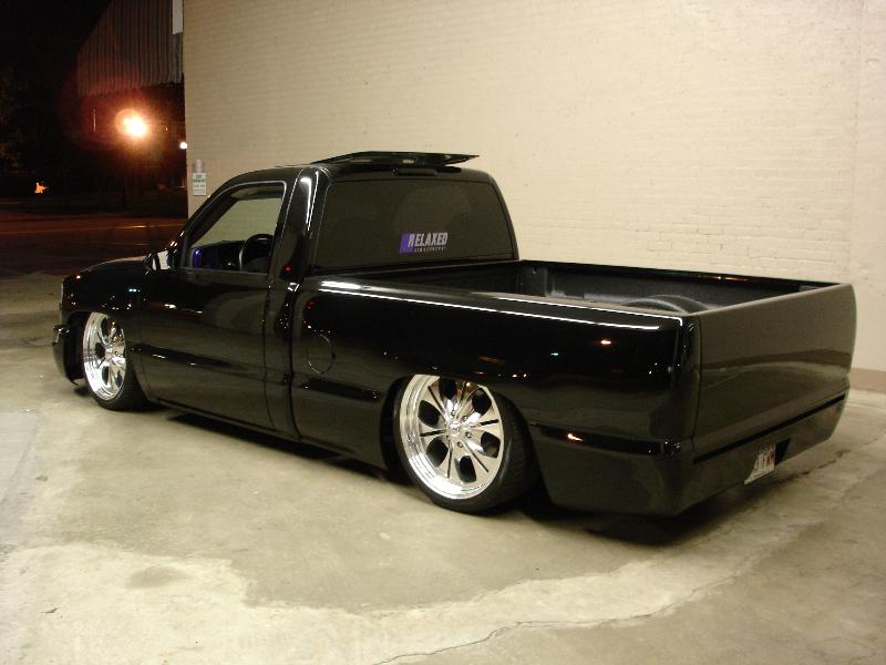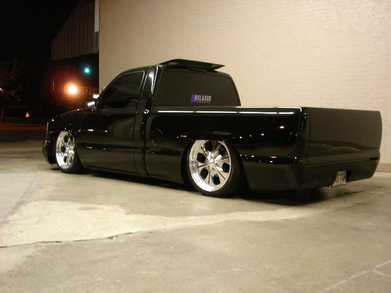 ///Billet grill, street scene sport mirrors, sir michaels roll pan, shaved door handles, tailgate handle, taillights, stake pockets, roll pan molded in, 56" Hi Tech LED, cleared headlights, clear parking lights, billet antenna, 41" Wabasto sunroof, some old school pinstriping on the hood and tailgate