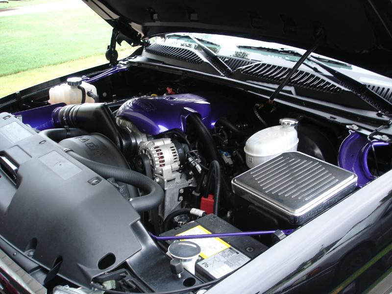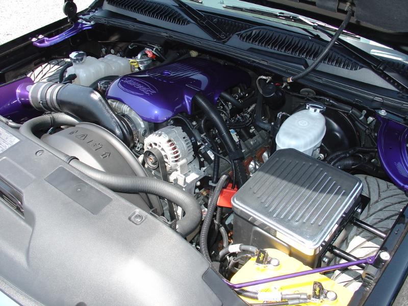 ///Computer reprogrammed, air max air intake, helix throttle body spacer, Flowmaster, billet pieces and some pieces painted purple
