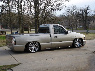 More Billet on the Interior as well as More Painted Pieces, More Billet under the Hood, New 20s up front and 22s out back, New Paint Job...Possibly Two Tone or Maybe Ghost Flames, New reworked Custom Bedliner, Reworked Leather/Suede Seats and Trim, A lot of Fiberglass work on the interior, Shaved Stake Pockets, Possibly even chopping the top or going topless