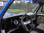 black vinyl seat with grey veloir inserts, black carpet, chevy bowtie floor mats, painted the interior blue, new dash pad