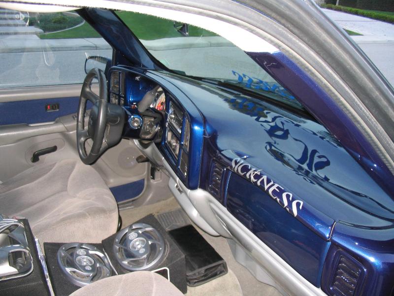 painted dash, painted back panels, flame gauges, billet door