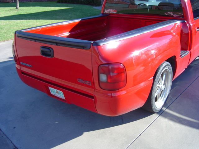 SOLD!! Stull billet grille, Escalade door handles, Candy Red tail lights, Cleared parking lamps, Cleared out Denali Projectors, and roll pan