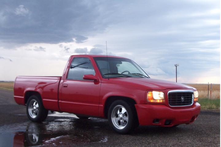 Escalade Front Clip,shaved stake pockets, welded Sir Mikey's roll pan, Slim Top Tonnae, Street Sceen mirrors, smoothed and painted door handles.SOLD