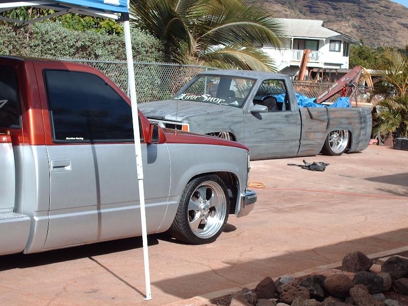 STOCK FLOOR BODY DROP,SHAVED DOOR HANDLES,TAILGATE HANDLE, TAIL LIGHTS, THIRD BRAKE LIGHT, STAKE HOLES, MOLDED ROLLPAN.PRIMER FOR NOW. ALL BACK YARD