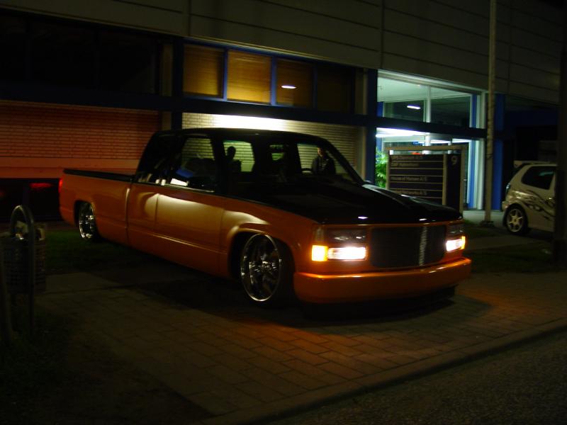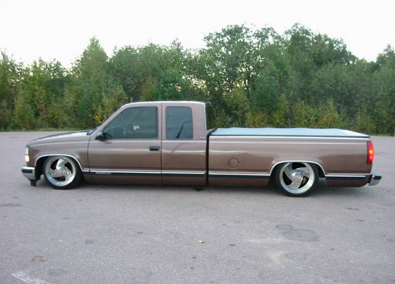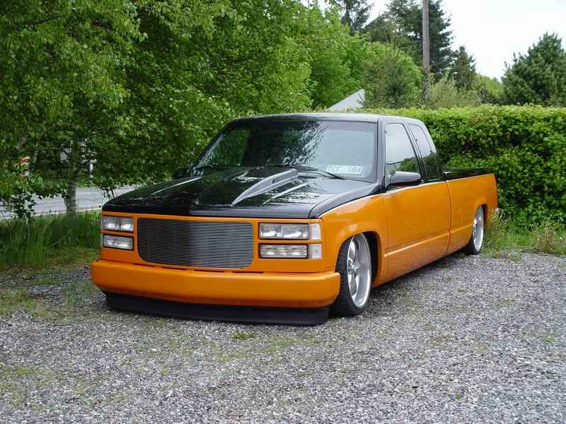 Bagged in all 4 corners. Art coolride kit with control arms up front and ART parallell 4-link with HAL shocks in the back. 4 way setup. 1/2 inch lines in entire setup with ART Big Red valves. Engine driven York comp. A 6 gallon tank with 8 3/8 ports under the bed and a 24 gallon tank with 3 1/2 inch ports in the bed. Custom made c-notch. Lays frame.