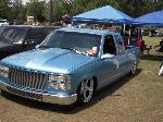 shaved doors ,3rd brake light,antenna,tail gate ,rollpan,tail lights, led clear caddys,cowl hood, chrome bumper w/billet insert, billet grill, ss mirrors painted light quazar blue metallic