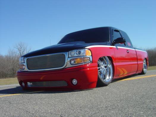 This truck has been custom painted including door jambs, between cab and bed, and inside the bed and tailgate as well. It has no problem laying out the Denali frontend and tucking 22" wheels.