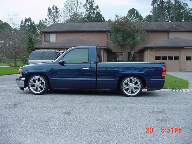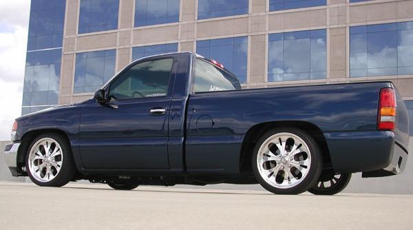 Escalade handles, shaved tailgate, Sir Michael's rollpan, fiberglass ARE Lo-Pro lid, billet grille, painted bumper trim/valance, cleared headlights, 2003 tailights