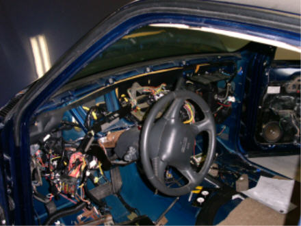 pulled all interior pieces and sprayed them dove gray. some pieces were sprayed indigo blue and silver to match new paint jof