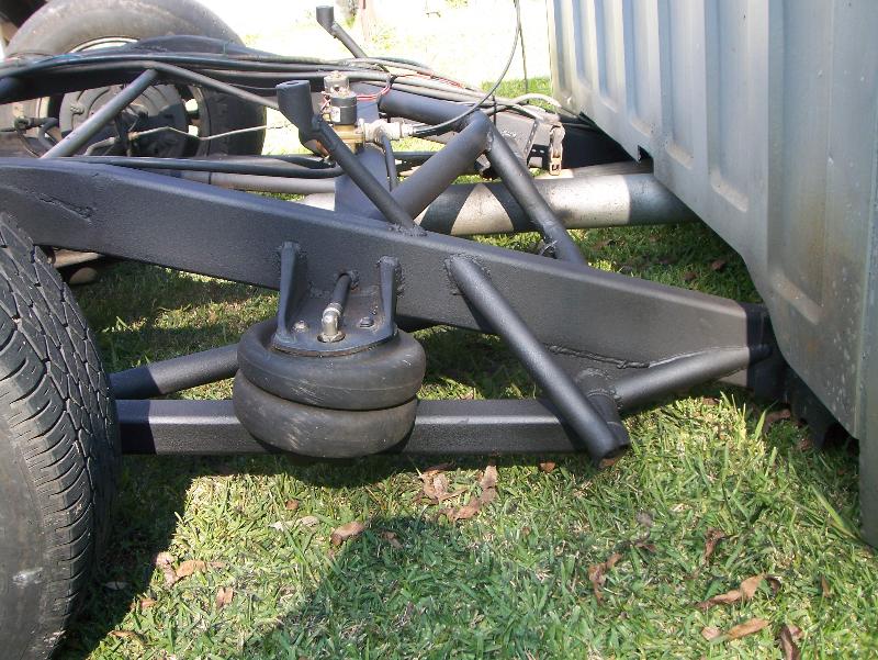 slam 7's in the front and 8's in the rear handbuilt frame from the firewall back stock floored with a AZ compressor Also I slid the cab back on the frame to get more clearance as not to tub the firewall as much