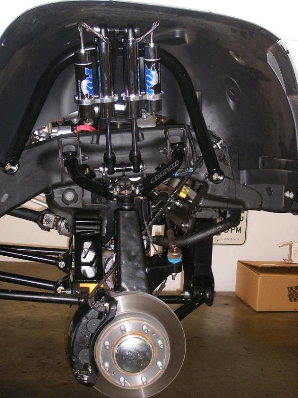 All work done by StreetShock in valencia CA.cognito 12in w/ upper arm and dual shock kit. Pitman & idler arm bracket kit. Deavers in the rear. Chrome fox's w/ reservoirs.
