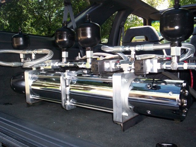 (2) CCE street pumps, (4) Italian dumps, #7 Marzocchi heads, ProHopper competition series cylinders (10" front, 6" rear), powerballs front and rear, (4) CCE accumulators, 48v Street Charger, Group 31 Motorcraft batteries, (6) solenoids, 1/0 AWG wire, Carling switches