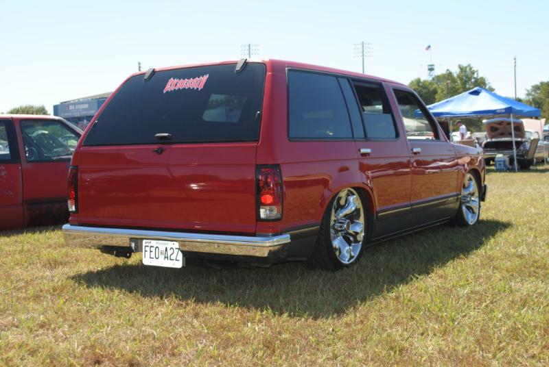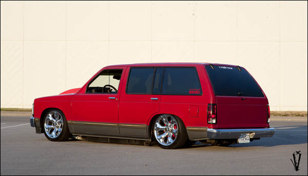 Removed roof racks, chrome front and rear bumper, chrome door handles, new taillights, clear bumper and corner lenses, 5% tint, 4" cowl hood, and an S10 grille