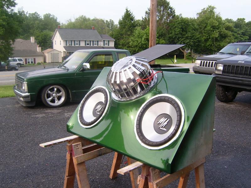 clarion headunit,mb quarts mids and highs,ma audio 3600watt amp,ma audio amp for the highs,and 3 ma audio 15"s hk150xc subs in fiberglass enclosure and painted to match truckhit 152.7dbs so far