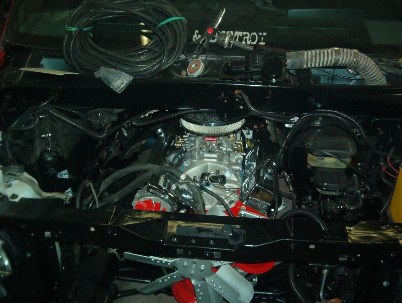 350 bored .40 over, 400 heads milled 20 thousanth and machined for 202 stianless valves,Edelbrock performer cam,lifters,intake, and carb. Hooker comp headers and a lot of chrome you wont even hardly see. 700R4, flowmasters