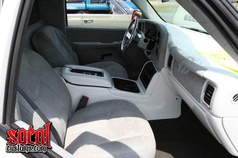 painted dash & console, Bonspeed Sweep steering wheel, chopped & stuffed factory seats & everything else in the cab was covered in suede by Chris Big Body Tisdale