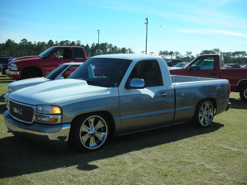 slammed, 5 in the front with 2" drop spindles and 3" drop coil springs, 7" in the rear with flip kit and hangers