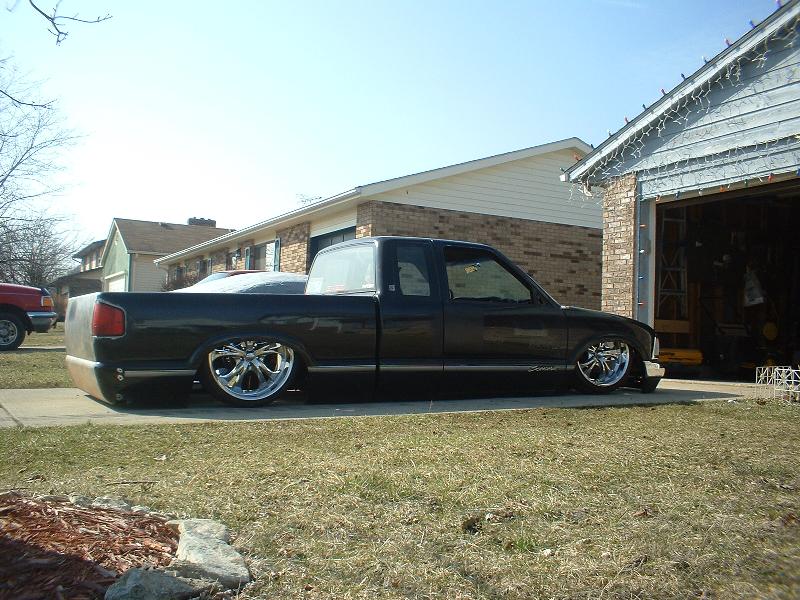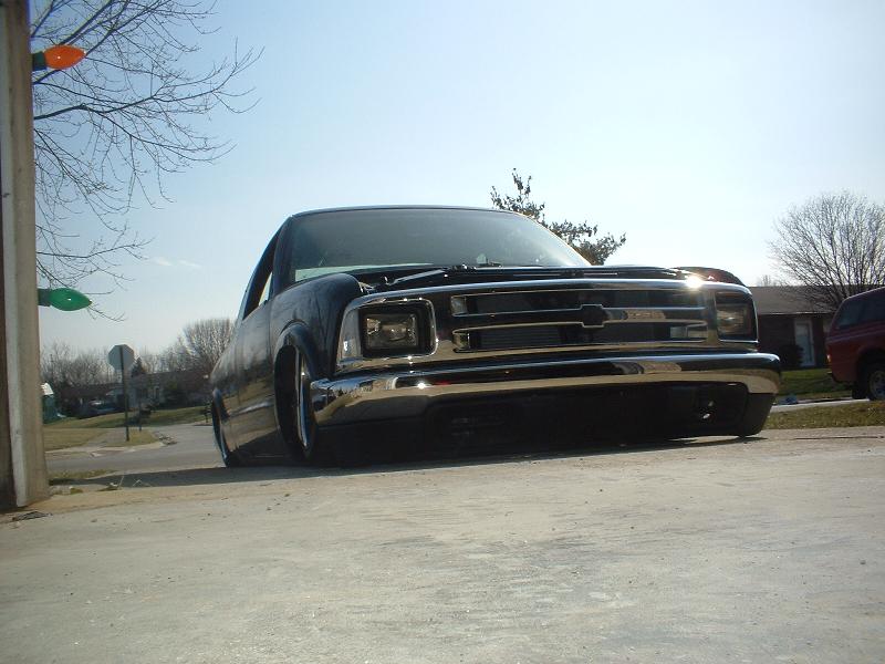 Slam RS72 in all corners, Suicidedoors.com super lift 4 link painted to match color scheme, Back halfed with 2x3, ART upper and lower A Arms painted to match, 1/2" up Asco Valves and 3/8" down Asco Valves, 1/2" lines 5 gallon air tank painted to match, Air Zenith compressor, Air Ride Tech Switches in the dash (No switch box)Entire frame is painted.