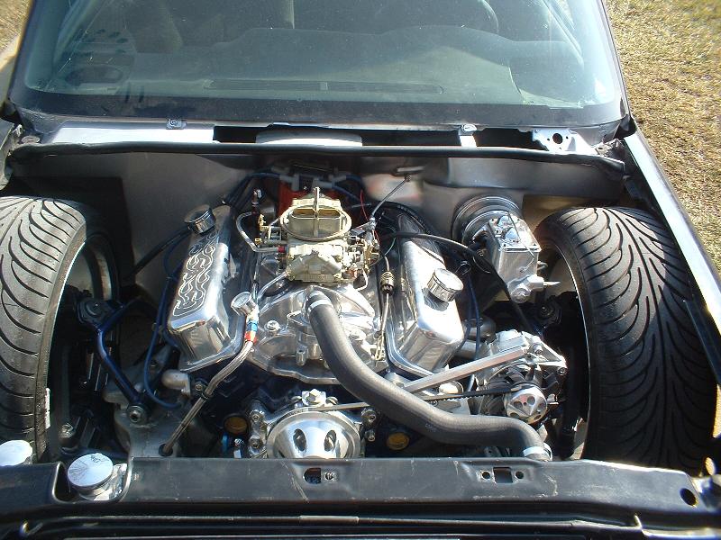 350 with lots of goodies that make me 450 hp all motor, Jaz Fuel cell, Howe 3" Aluminum Radiator, 2.5" Exhaust with 40 Series flowmaster and turndowns just past the cab, hedman elite headers