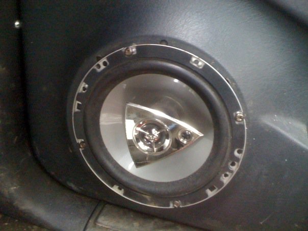 So far just an old eclipse radio a friend gave me and a set of 6.5" Rockford fosgate door speakers that I had sitting around and able to use now. Hopefully all that will change within time.