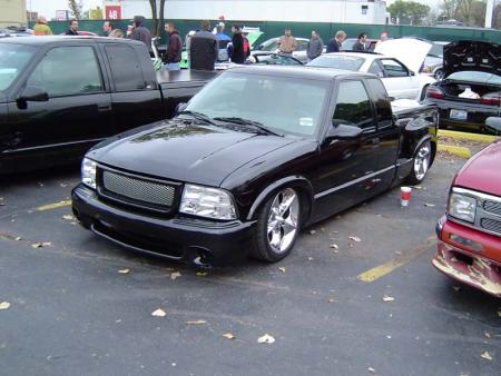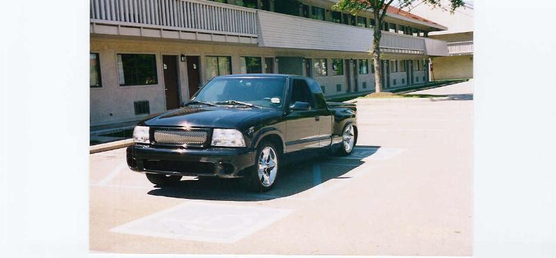 slim top lid, clear headlights w/ the fog lights in them. Street Scene Sport mirrors. Street Scene Speed grille in the front. Envoy front bumper w/ the chrome moldings shaved off, Street Scene Speed Grille and fog lights. Shaved antenna, shaved gas door, shaved plastics off front steps, 2 10in LEDs in a Grant Kustoms gate skin. Street Scene 3pc step shaver molded together...