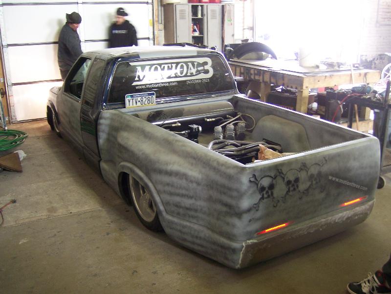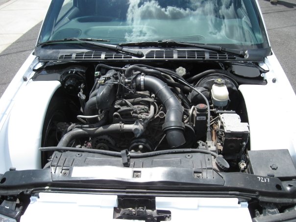 2.2L stock w/custom intake and exhaust relocated many things due to sfbd,wheel tubs,custom fan box to keep heat/ didn't worry about a/c