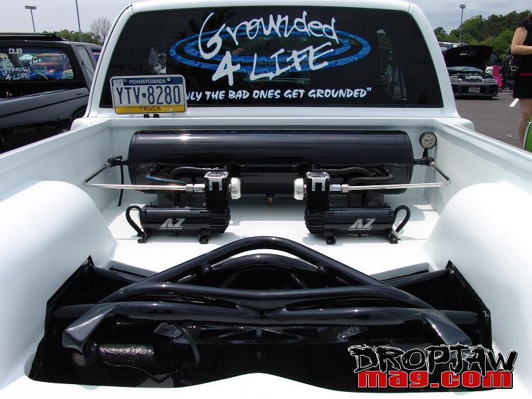 stock floor bodydrop 3.25, boxed frame,a.r.t. tubular control arms,connitech bags all around,kp components rear link setup,step notch,tubular bridge setup,parker valves,hydraulic lines used,12 gallon air tank,2 air zenith compressors,8 switches