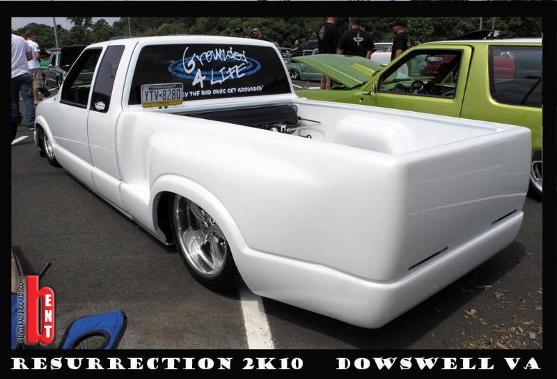 custom hood;shaved handels,antenna,third brake light,tailights,gas door,mirrors;all metal bed front steps rear steps smoothed interior of bed,full tailgate skin w/2 leds,custom aluminum 20 gallon fuel cell