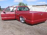 Shaved doors, antenna, third break light, break lights, gas door, custom bed floor which was raised then molded shut, molded skin with LED tail light, an AVS license plate retractor and stock gas door molded in bed floor, custom polished aluminum fuel cell,and suicide doors