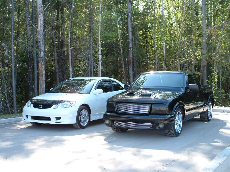 tint my windows 35%, a hoodshields, headlights cover, side windows deflectors, back sunflector, front Envoy Bumper with frog lamp, the TRENZ billet grills and hoodscoop, Billet fuel doors and remove factory stickers,I shave GMC SONOMA on the back