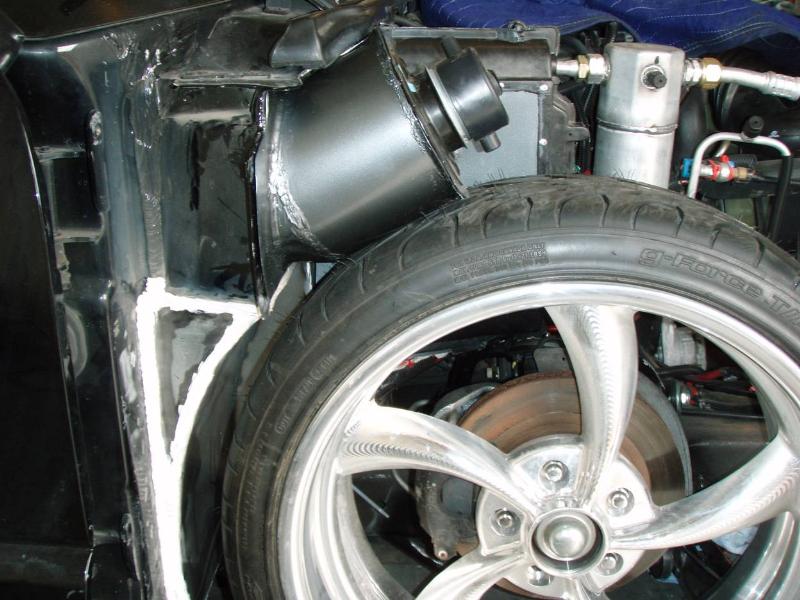 Blower Housing built at a 33 degree angle to tuck wheels. Uses the complete stock firewall A/c hole, so I don't lose any A/C pressure