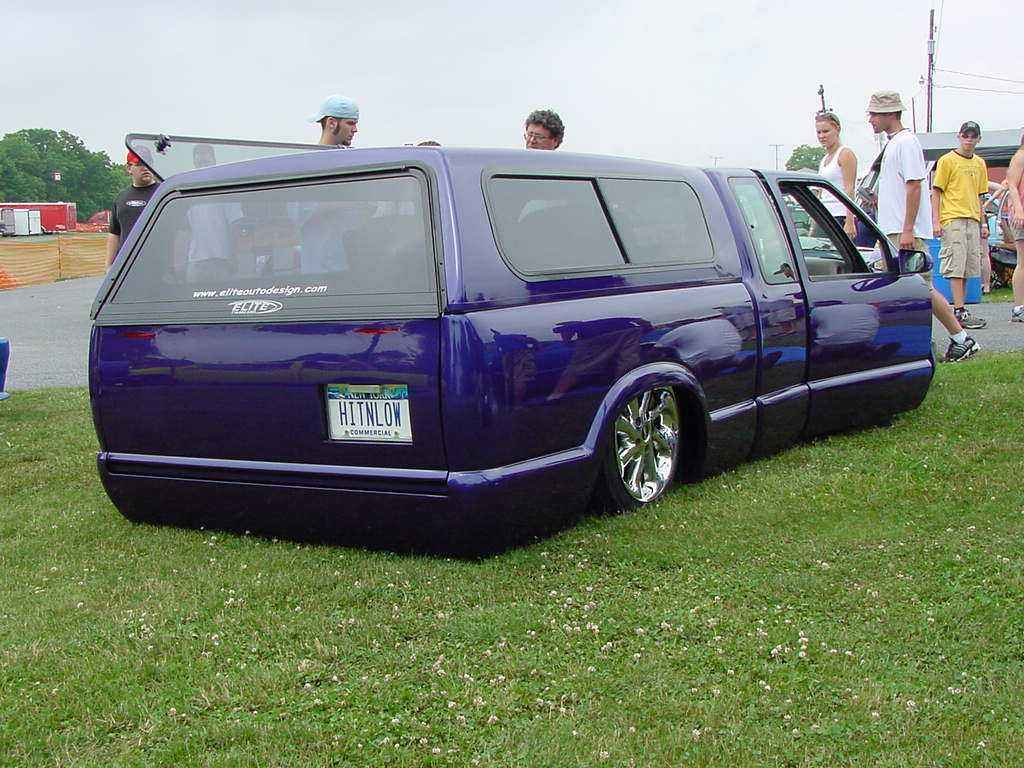 3 & 3/4 Inch Body Drop, 2000 gmc envoy front end, Shaved Firewall, Notched Firewall To Fit The 17'S, Factory Purple Paint, Sunroof, Billet Grille Insert, Leer Cap, Full Walk Through, Sir Michaels Smooth Roll Pan, Shave Tailgate With Frenched In License Plate Box, Shaved Tailights, Shaved Suicide Doors, Shaved Antenna, Flush Led Tailights , Ram Air Hood