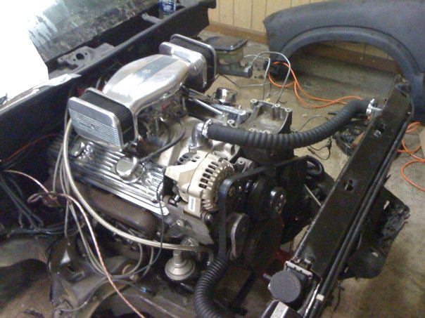 got the radiator in the core support with hoses connected