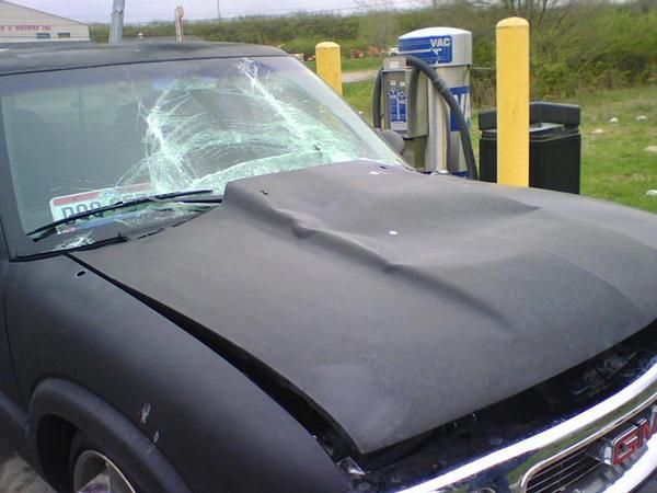 zip ties holding a steel hood when it's freezing and driving behind semis on the highway... bad combo... on the way to LOATP '07, 10 miles from home