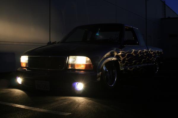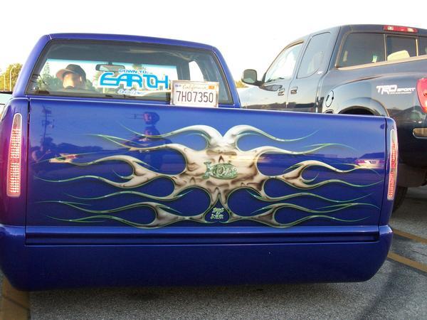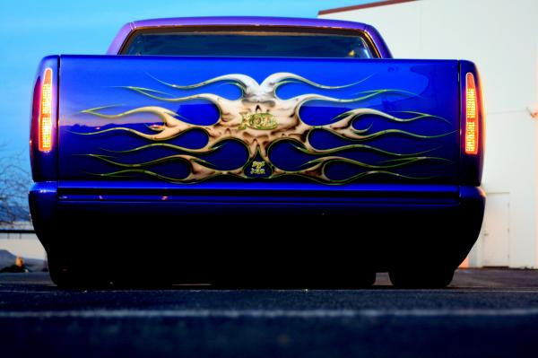 Blue with silver flames