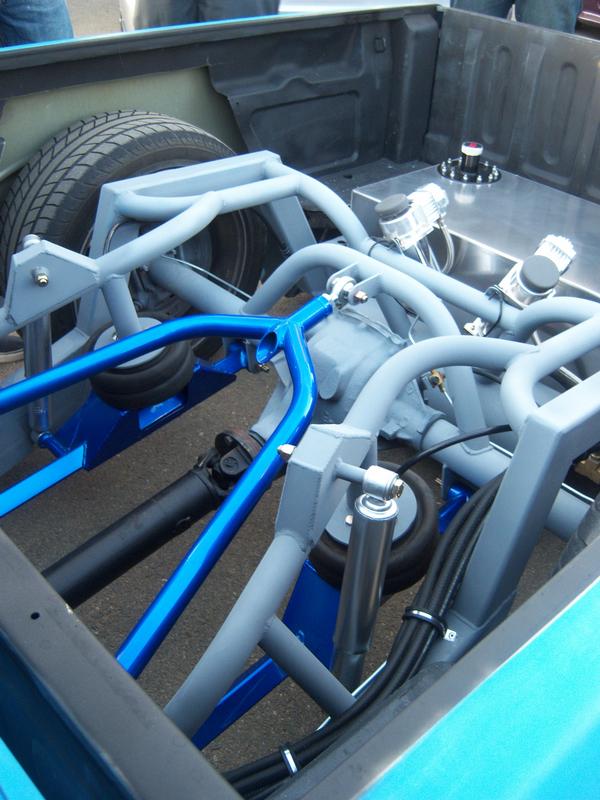 front cut up to fit contitech 2600's...full "backhalf lol" cantilever 3 link custom made upper and lower link bars...slam specialties re-8s..custom built fuel cell 36 gallons....all of the rear work was done at WWW.EXILEFABRICATIONS.COM