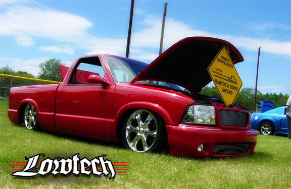 Fully retweeded black interior and repainted victory red. Billet cranks,shifter,and pedals.Envoy Handels, White light cluster,a/c vents, and glogauge cluster. Colorado Customs Steering Wheel.A/C in glove box with mounted fire extinguisher. Shaved passanger dash handle and airbag. Shaved bezel airbag switch, Shaved door locks. Amps and crossovers mounted behind seats. Pass thru for subs. Blue and Red neon accents