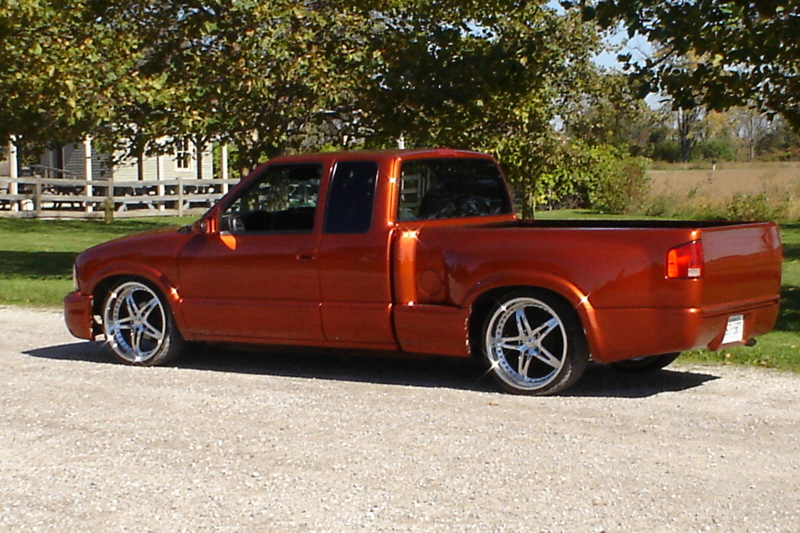 Shaved front and rear steps, roll pan shaved gate Envoy front end conversion, billet upper and lower grille and painted mopar GoManGo (colour of new daytona chargers)