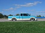 fbss air suspension, 3 link wishbone and notched rear end, 8 gallon tank, 4 1/2" Eairvalves and 4 3/8" Eairvalves(dumps), 2600s up front and 2600s out back, SD gas tank crossmember, 2 viair 480c compressors, all mounted under bed between rear frame rails. crazytalkcustoms and Creative Illusions
