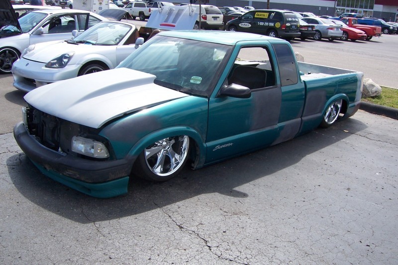 i have a 3 1/2 body drop completely shaved with suicided doors bed has its own square tube frame with new sheet metal trailblazer 3rd brake light sequential led taillights and more junk to do.
