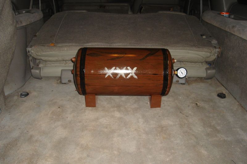 bagged on 4 slam RE7's. engine driven compresor feeding 5 gallon tank and 1/2" air line. custom built rear parellel 4 link with canti attachment.