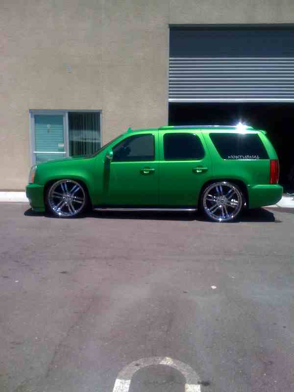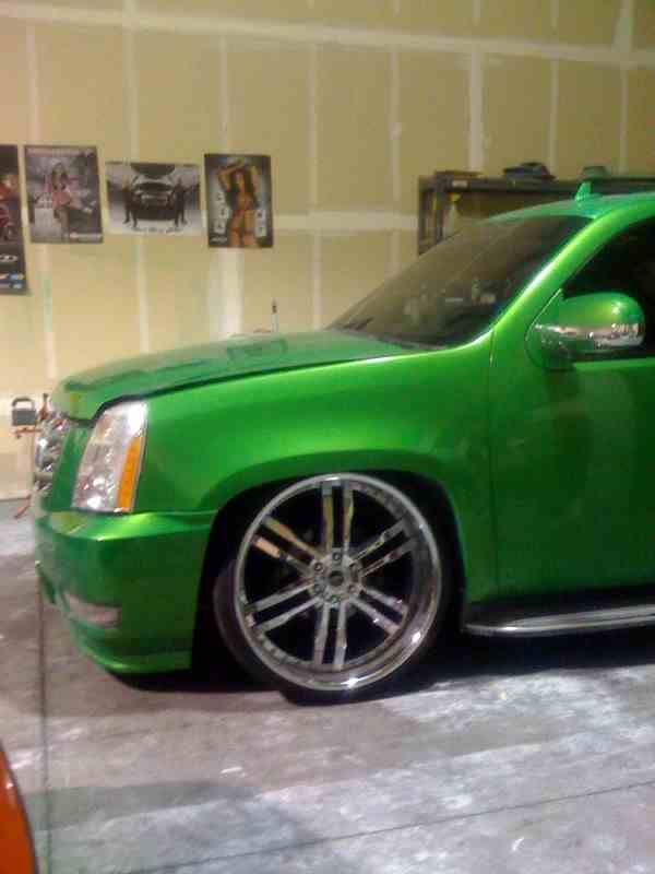 09 cadillac front end conversion, and back conversion, repainted house of kolor lime green with 6 ice pearls over