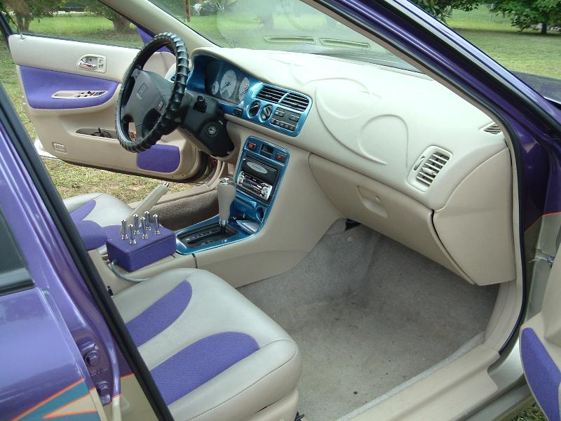 tan leather and purple tweed,headliner and dash
